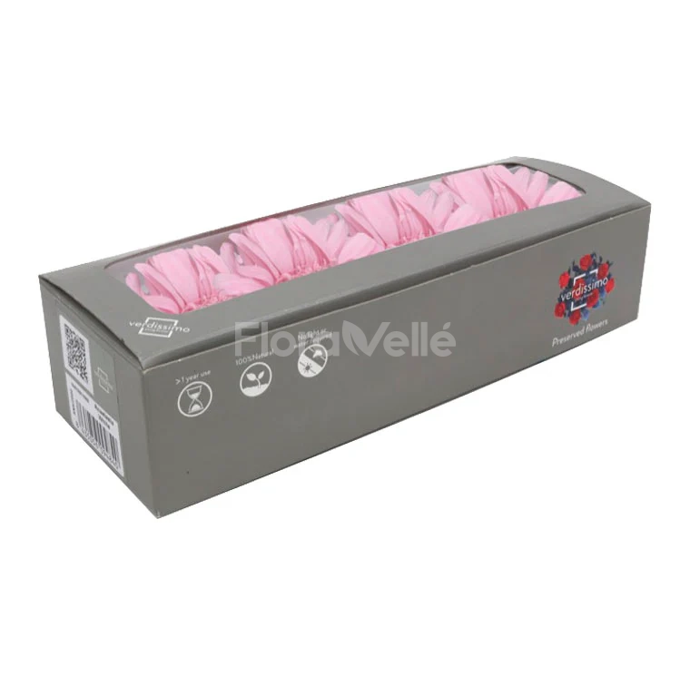 Gerbera criogenata, cunoscuta si sub numele de margareta Gerbera, este a cincea cea mai folosita floare taiata, datorita varietatii de dimensiuni si culori pe care o ofera. Astazi, cultivarea ei a devenit populara in intreaga lume, atat pentru flori taiate, cat si pentru decor. Este o floare potrivita pentru a recrea spatii in stil boho chic. Combinata cu frunzis si ramuri, ofera un aspect rustic si natural.